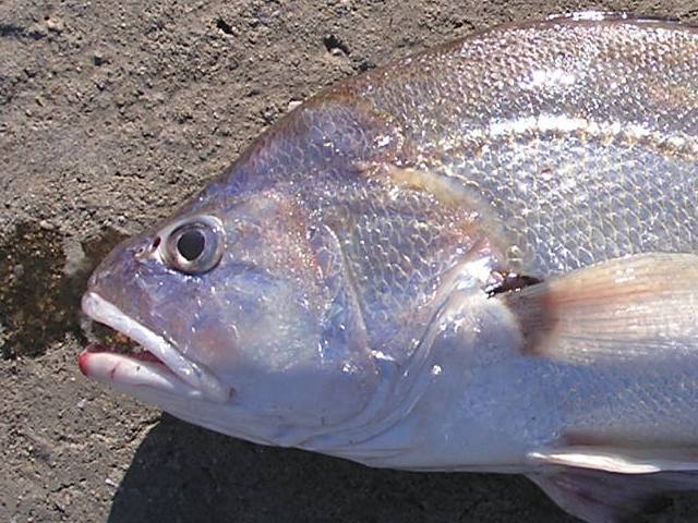 コルビーナ Plagioscion ternetzi スズキ目ニベ科 イシモチに似ている。 釣りのヒント 全身写真 |