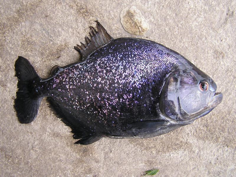 ピラニア(ずんぐりタイプ) Pygocentrus ternetzi カラシン目カラシン科 カミソリの切れ味で、超有名。パンタナールのほとんどどこにでもいる。指を食い切られないように注意。 釣りのヒント 全身写真 |